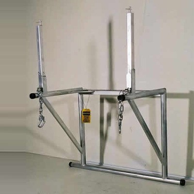 The Basic Support Frame attaches to any of the DURACHUTE™ Outriggers (Hangers) and is used to attach the debris chute system to the outrigger.  Each frame comes equipped with hopper stands, allowing for an easy addition of a top hopper.  Basic Support Frames are fully galvanized and, like all DURACHUTE™ Plastic Debris Chute system pieces, is safe and easy to use.