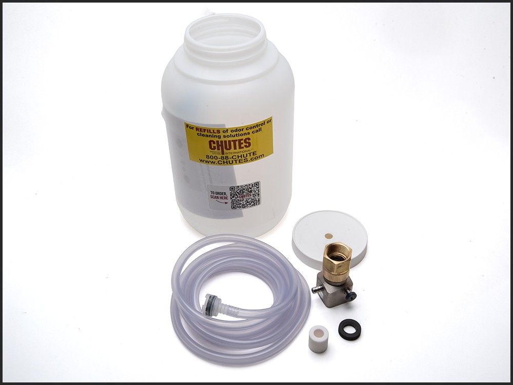 REPLACEMENT PART: Complete disinfecting and sanitizing system (minus the door) includes a one (1) gallon D&S bottle with pre-drilled lid, solution hose, proportioning valve, and brass swivel coupling (which connects the system to the customer-supplied wash down hose). NOT a retrofit, requires an existing wash down pipe.
