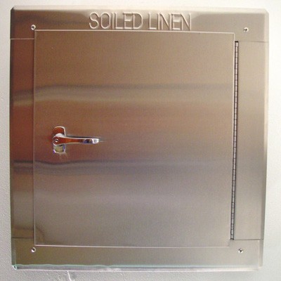 CHUTES’ side hinged, linen chute doors are 100% stainless steel doors – front & back panels, sides and skirts.  All are 1 ½ hour UL labeled, with ADA compliant handles.  This laundry chute door has a 170-degree swing allowing most possible use of entry into the chute.  Side hinged doors may not be accessible to the public.