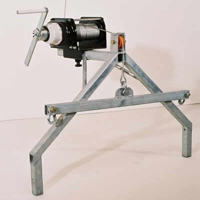 This winch easily inserts into the Basic Support Frame and is available in two lengths: 80′ and 150′.